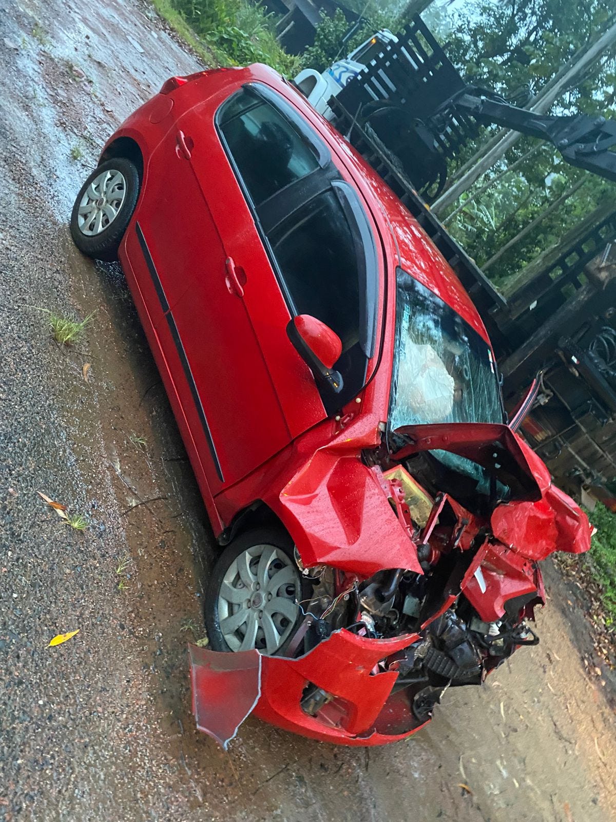 Já o condutor do Palio sofreu um corte contuso no joelho direito, contusões no nariz e relatou dores no tórax. Apesar disso, ele negou dores na coluna e afirmou estar usando cinto de segurança no momento do impacto. Após receber os primeiros socorros, com curativo no ferimento e imobilização com colar cervical, ele foi encaminhado ao hospital para avaliação.