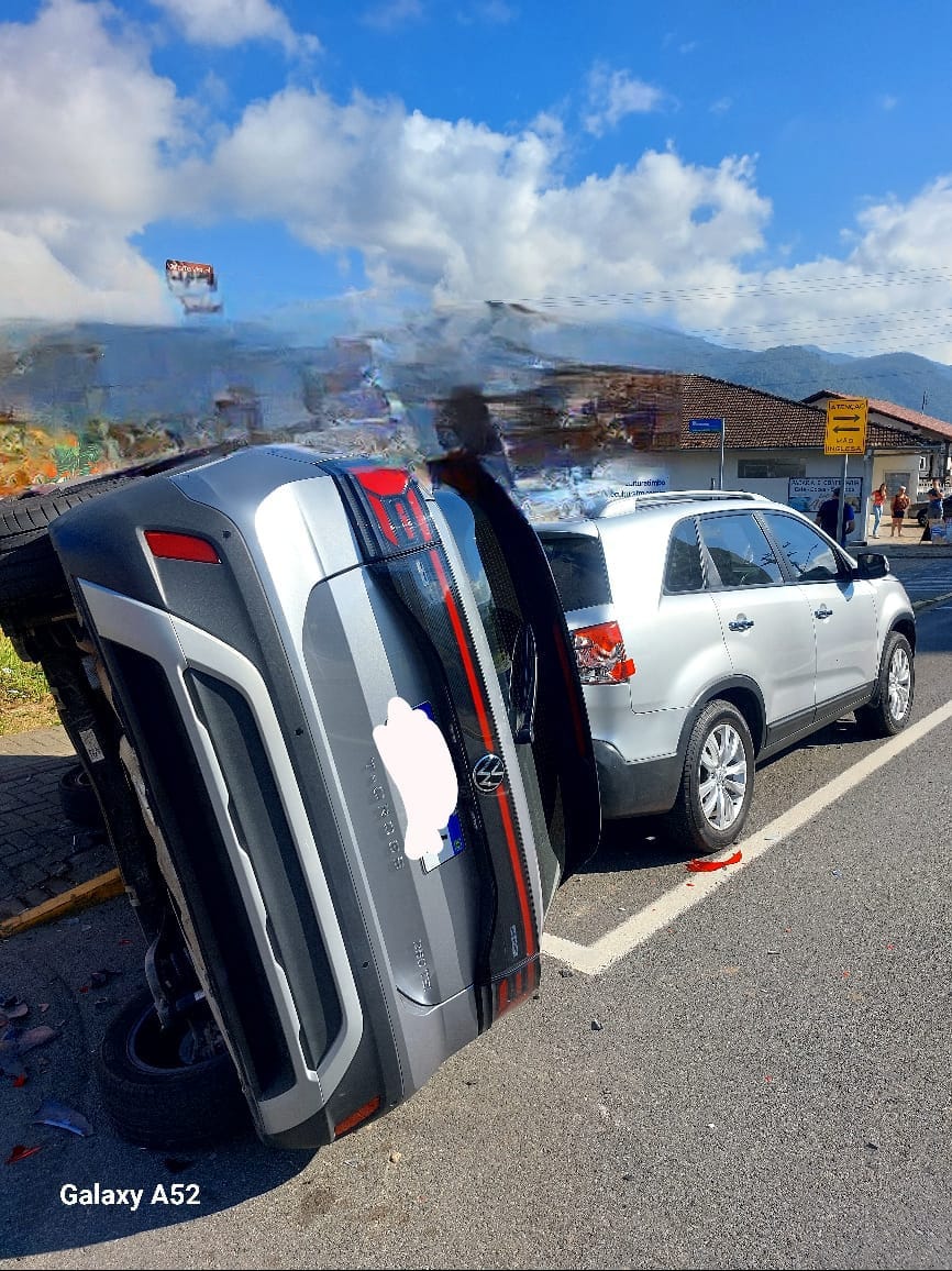 No local, foi constatado que um VW T-Cross colidiu na traseira de dois veículos que estavam estacionados na via, vindo a tombar de lado após o impacto. A condutora do T-Cross recebeu atendimento inicial dos bombeiros e da equipe do Samu de Timbó, sendo posteriormente encaminhada ao hospital da cidade para avaliação médica.