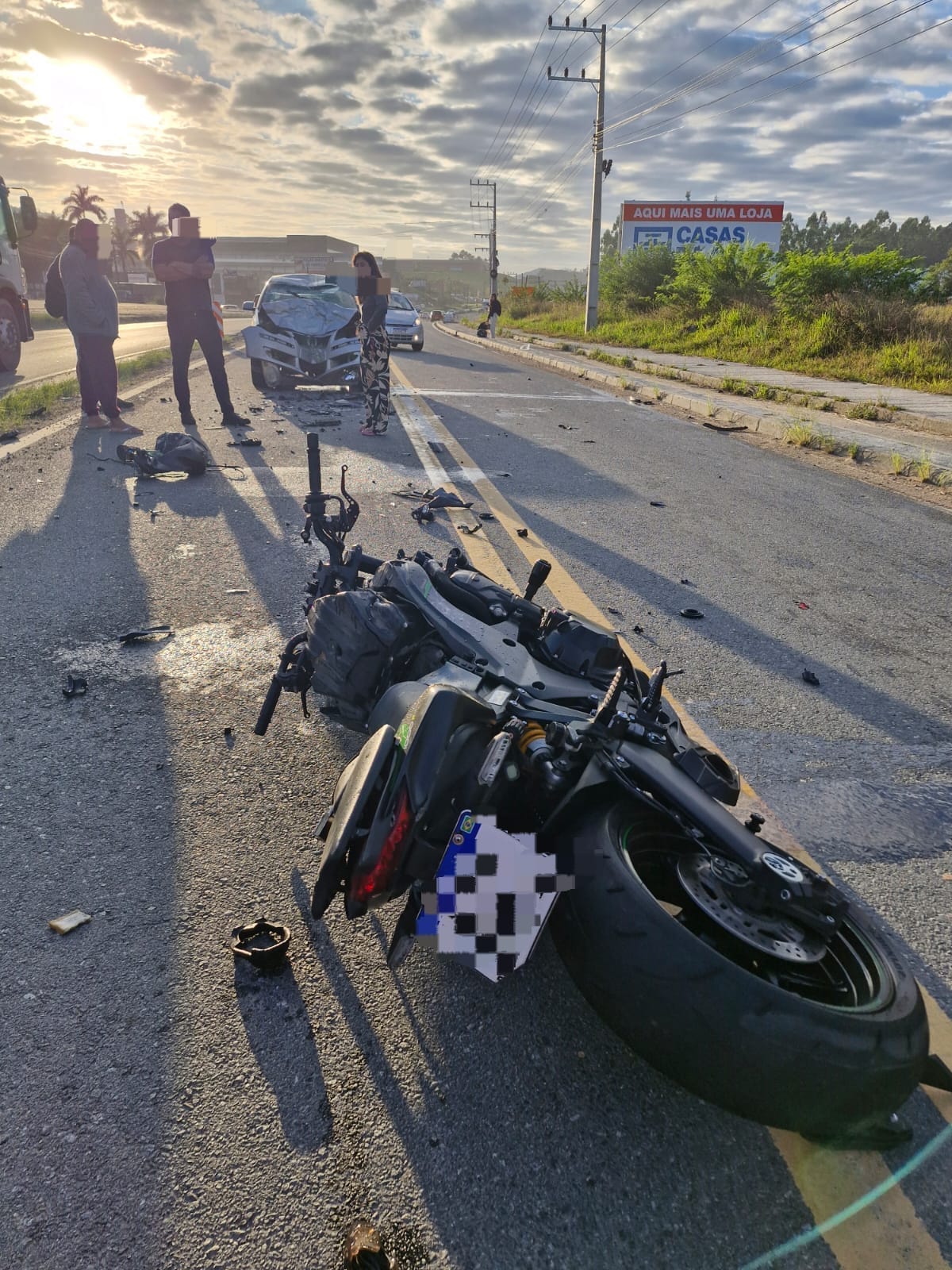 O acidente ocorreu entre um Volkswagen Polo de cor prata, com placas do Mercosul, e uma motocicleta Kawasaki Z1000, também com placas do Mercosul, de cor preta. No carro, estavam duas pessoas. A passageira, uma mulher de 28 anos grávida de 36 semanas e com histórico de gestação de risco, foi encaminhada ao Hospital Beatriz Ramos em estado grave. O motorista, seu marido, recusou atendimento médico.