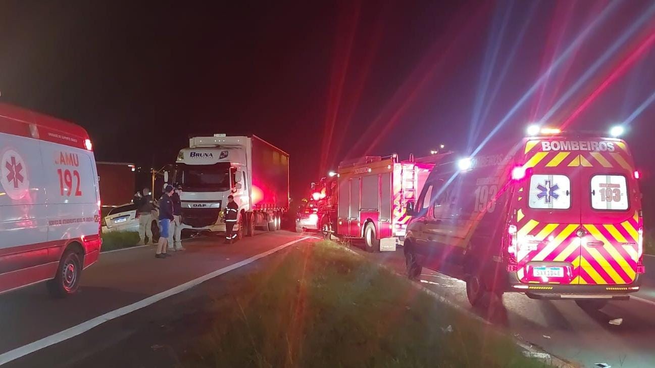 O acidente ocorreu por volta das 21h43. O condutor do caminhão, um homem de 53 anos, foi avaliado pelos socorristas e não sofreu ferimentos, recusando encaminhamento hospitalar. Já os ocupantes do automóvel precisaram de atendimento médico.