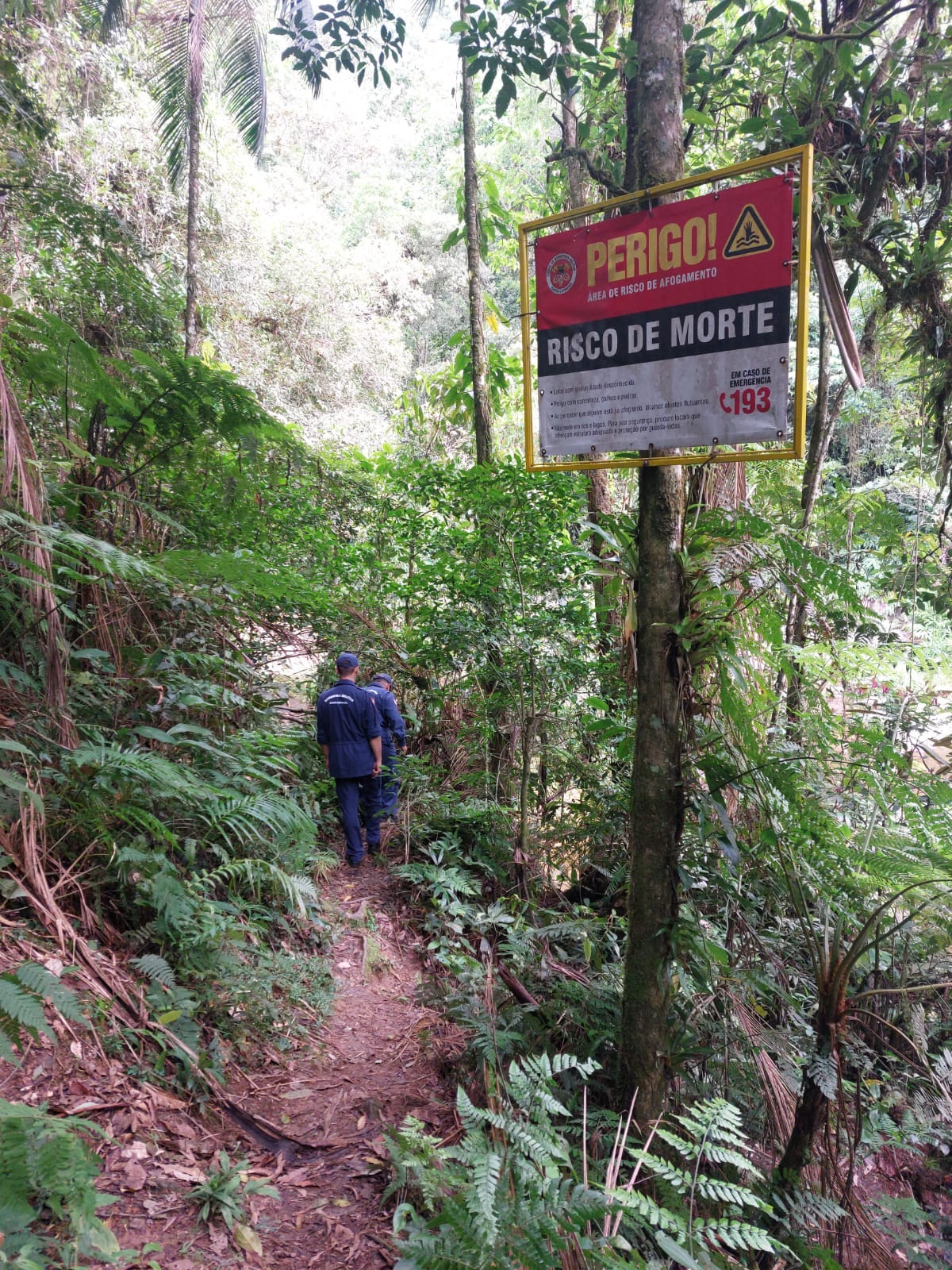 No local, há uma placa do Corpo de Bombeiros alertando sobre o risco de afogamento.