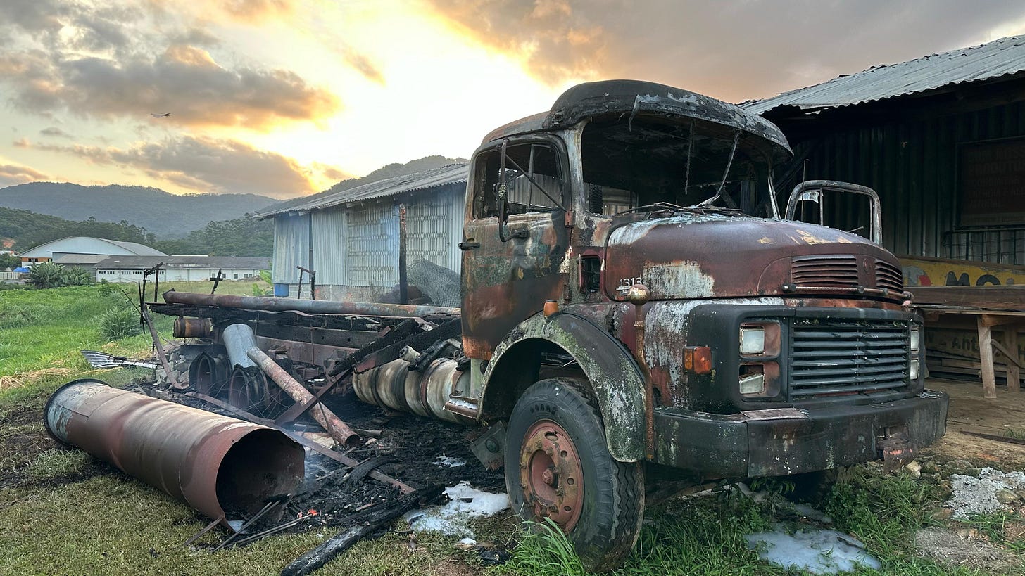 O Corpo de Bombeiros Militar de Rio dos Cedros foi acionado por volta das 17h05. No local, as equipes constataram que, além do caminhão, o fogo havia consumido pneus velhos, entulhos de madeira e parte da estrutura do telhado do galpão, que era misto entre madeira e placas de metal.