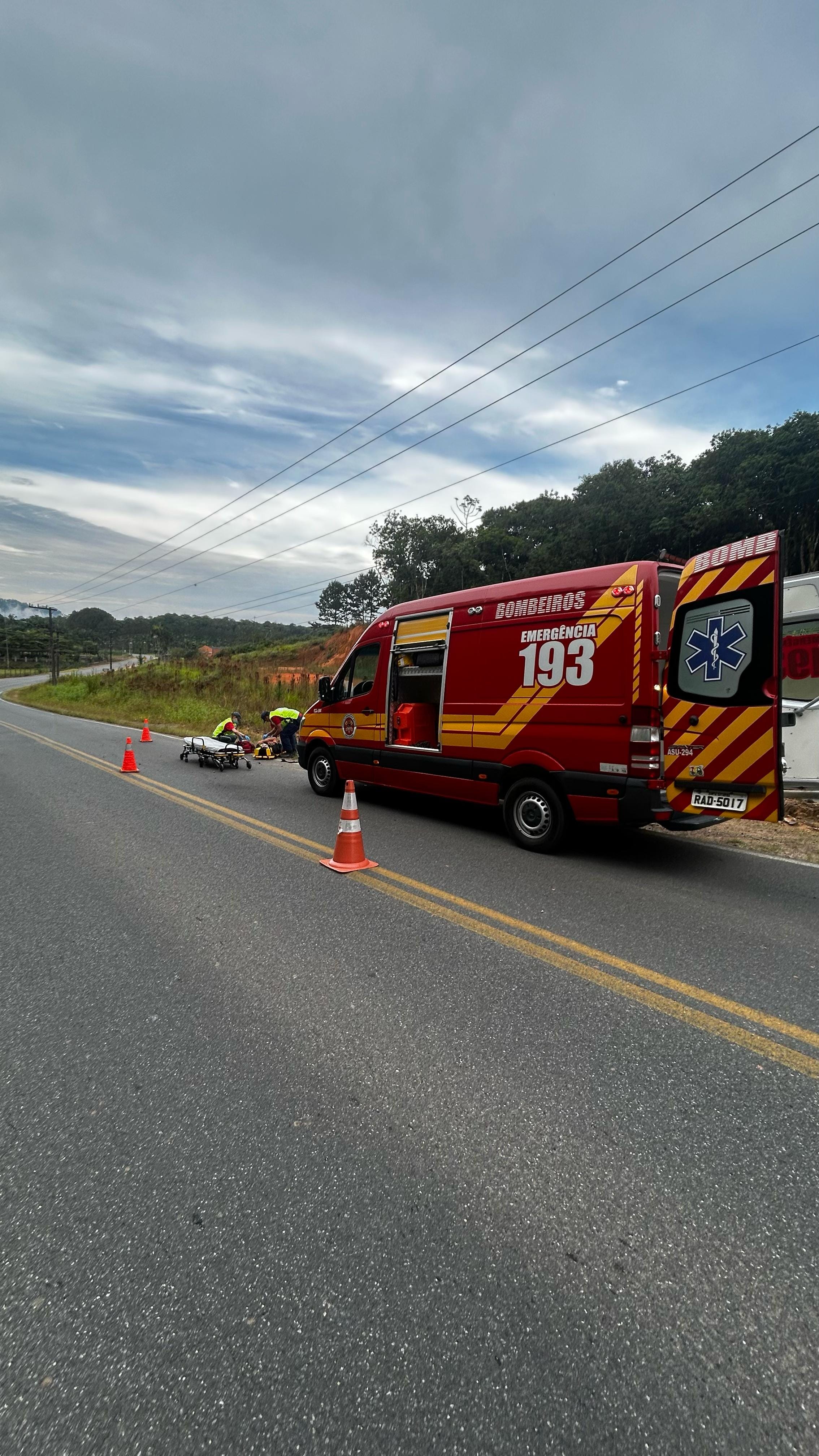 De acordo com os bombeiros, a situação envolveu a queda de uma motocicleta Honda Fan, de cor vermelha, que acabou colidindo contra a grade de proteção da via. O condutor, um homem de 27 anos, foi encontrado consciente, orientado e fora da pista de rolamento. Ele apresentava escoriações nos membros superiores e inferiores, mas sem indícios de fraturas. Os sinais vitais estavam estáveis.