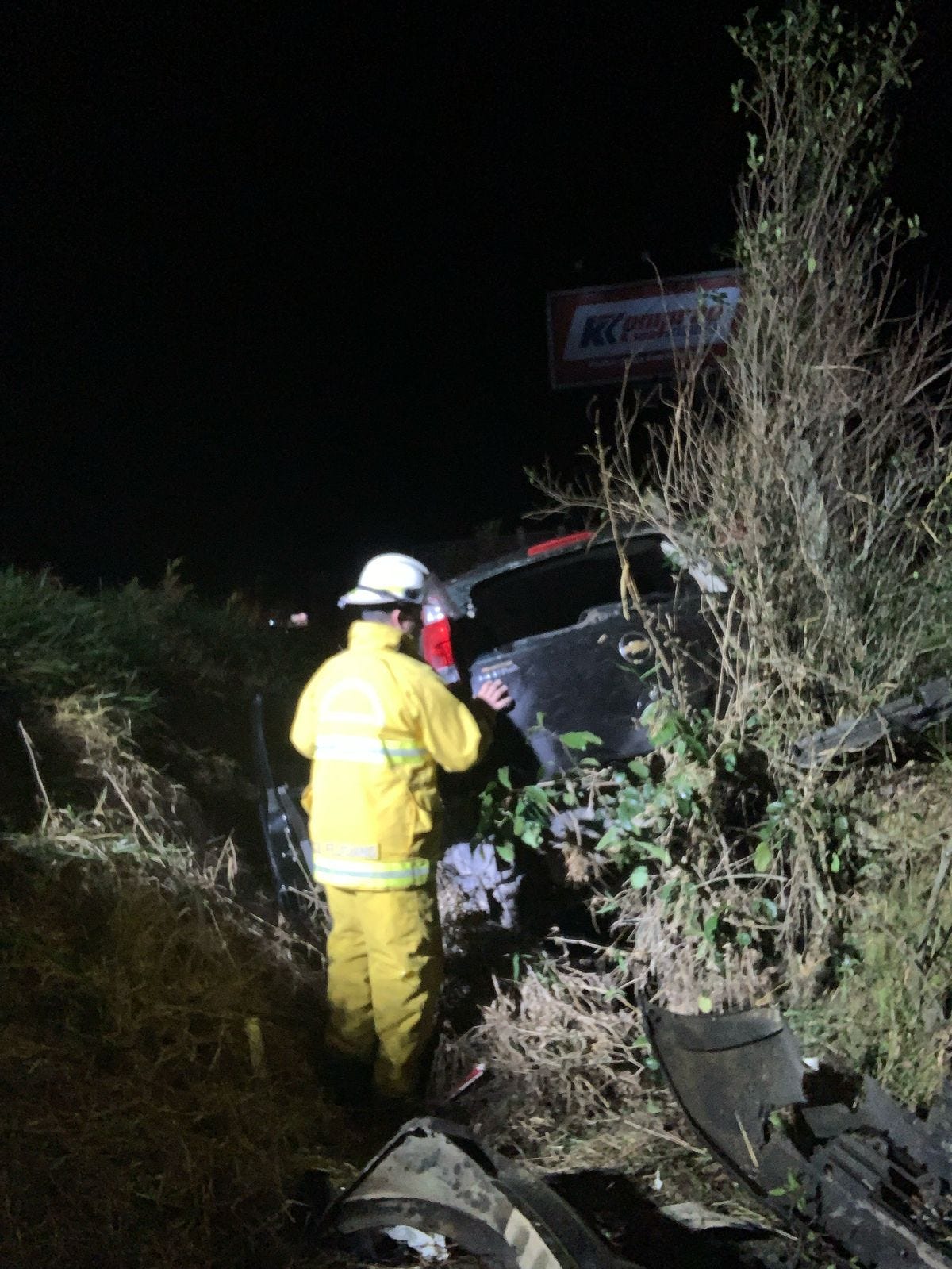No local, as equipes de resgate encontraram um veículo Meriva, com placas de Indaial, que havia saído da pista. O condutor, que estava andando pela cena no momento da chegada dos socorristas, recebeu os primeiros atendimentos ainda no local.