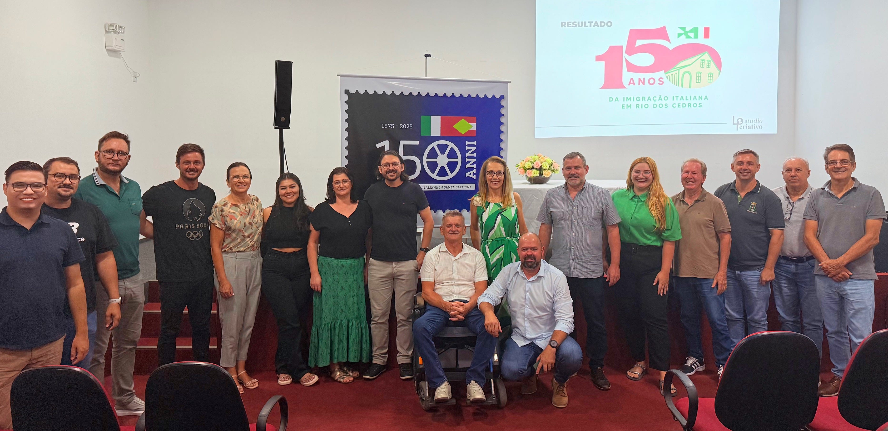 Na manhã desta terça-feira (04), o Auditório do Museu da Imigração de Rio dos Cedros e Região foi palco da apresentação do Selo Comemorativo em homenagem aos 150 anos da imigração italiana em Santa Catarina. A iniciativa faz parte de um conjunto de ações que celebram a trajetória dos imigrantes e ressaltam sua contribuição para o município e o estado.